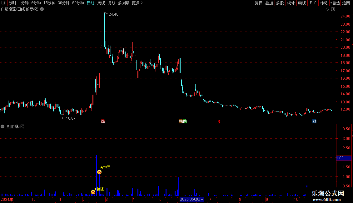 1.资金抱团指标柱体出现表示慢慢游资金在介入,同时柱体的长短表示主力资金量的大小,当达到一定量能表示多路资金由分歧转向一致,提示抱团信号。