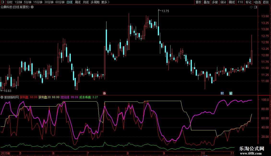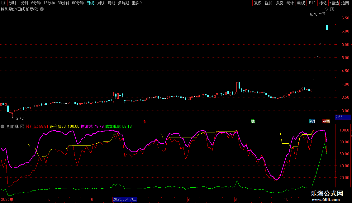 挖坑线:EMA((100+获利盘-获利盘20),3),COLORMAGENTA,LINETHICK2;
