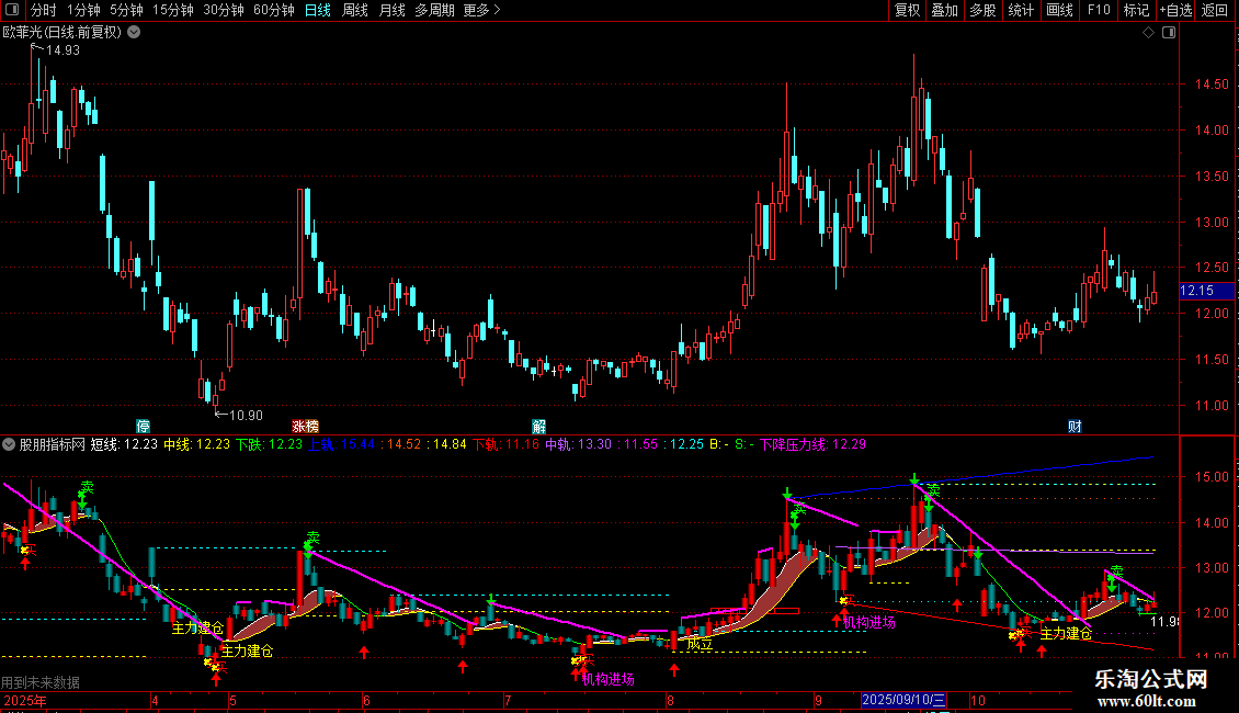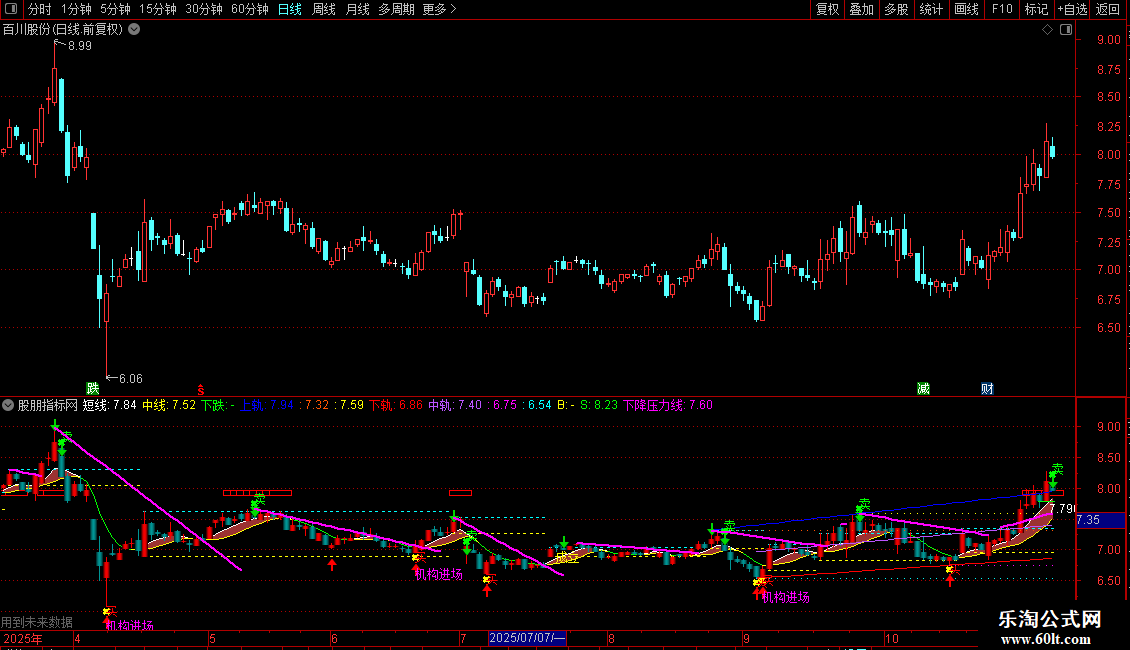 DRAWTEXT(VAR11 AND COUNT(VAR11,30)=1,LOW*0.95,'机构进场'),LINETHICK1,COLORFF00FF;