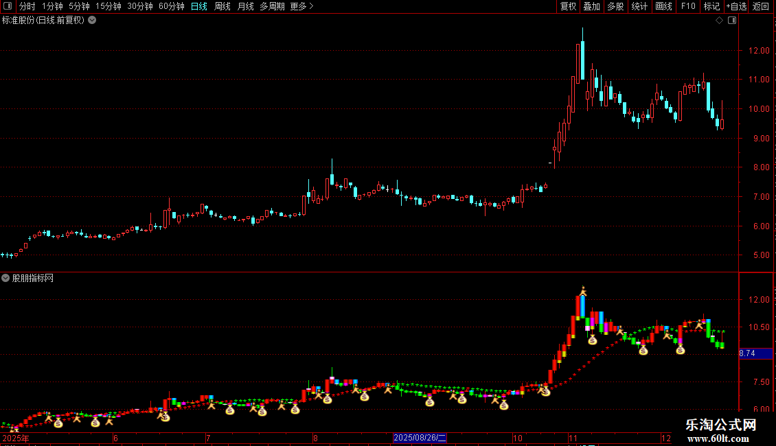STICKLINE(CLOSE> REF(CLOSE,1),OPEN,CLOSE,3.2,0 ),COLOR003333;