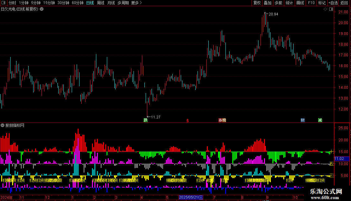 DRAWTEXT(ISLASTBAR=1,IF(VAR23>=0,0,0),'一天'),COLORYELLOW;
