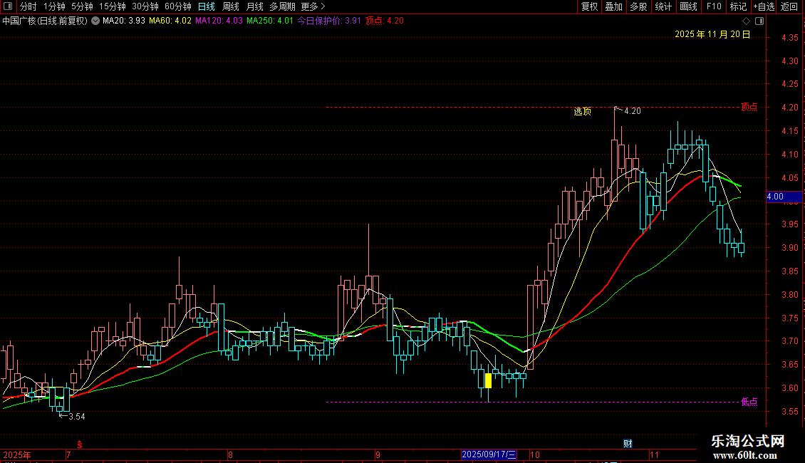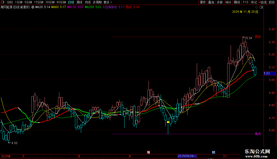 低点:IF(CURRBARSCOUNT<=60, CONST(IF(ISLASTBAR=1,LLV(L, BARSLAST(CURRBARSCOUNT=60)),1)),DRAWNULL),COLORMAGENTA,DOTLINE;