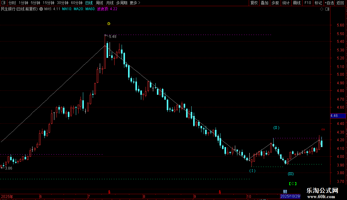 DRAWTEXT(EN1 AND PL10>REF(PL10,1) AND ZTJZ5=3,LOW*0.98,'⑷'),COLOR0000FF;
