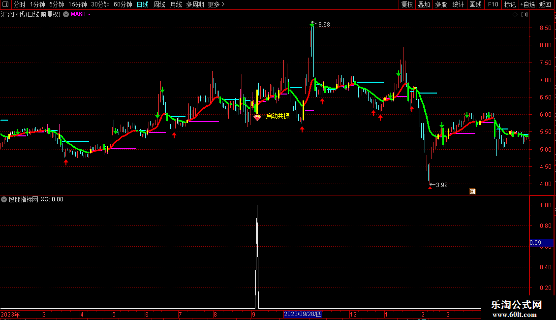 DRAWTEXT(XG,LOW*0.99,'○---启动共振'),COLORYELLOW;
