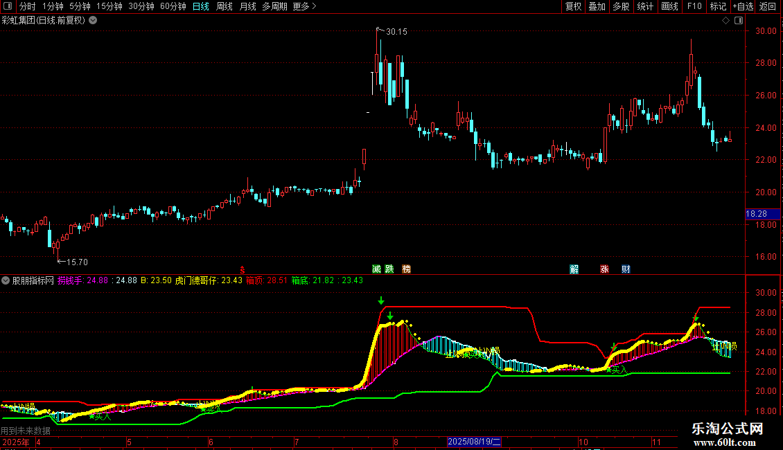 箱底:MA(REF(LLV(上收,30),1),2),COLOR00FF00,LINETHICK2;