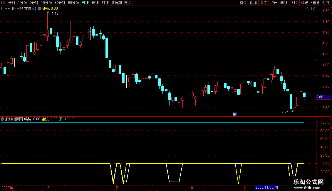 金坑:IF(A6<0,-50,0),COLORYELLOW,LINETHICK2;
