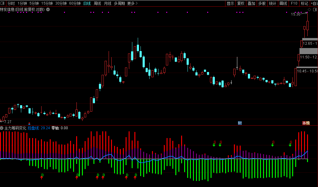 紫线递增,筹码越来越集中,主力吸筹阶段,重点关注时机
