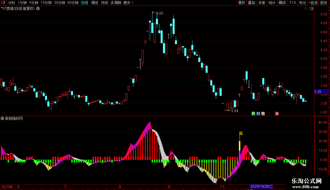 1.底部乖离指标是将价格趋势、成家量趋势和EMA选出底部乖离度高的信号,乖离度高说明底部确定性越高。副图中还包含其他辅助判断强弱的红绿柱判断。
