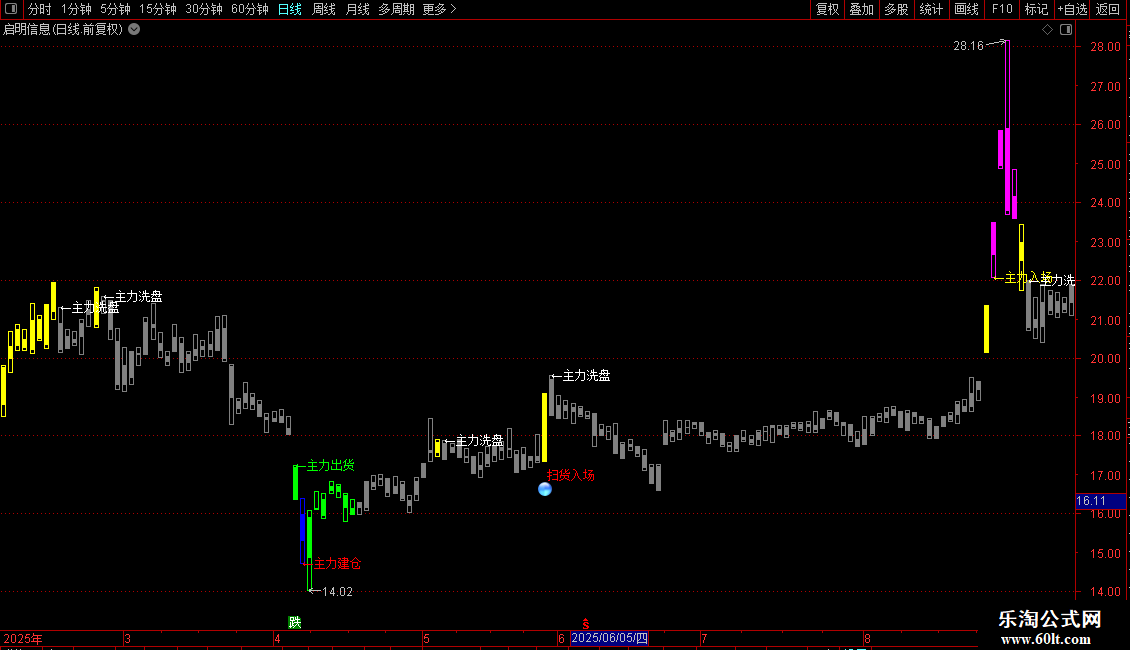 DRAWTEXT(REF(HG7,1)=3 AND HG7=2,H,'←主力洗盘'),COLORWHITE;