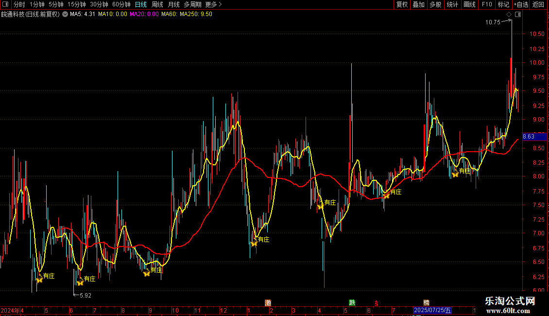 DRAWTEXT(有庄,L-0.0011,'↖有庄'),COLORYELLOW;