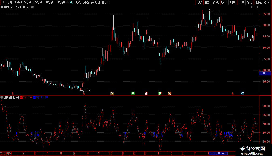 鱼网:IF((CROSS(RSI2,RSI4) OR CROSS(RSI2,A3) AND A3<好线 AND RSI1<平线),48,38),COLORBLUE,LINETHICK1;