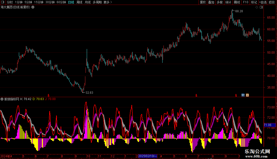 MACD和KDJ指标组合。无未来,无加密。指标来源于网上,自己使用多年,感觉指示明确,适合各时长的波段操作。