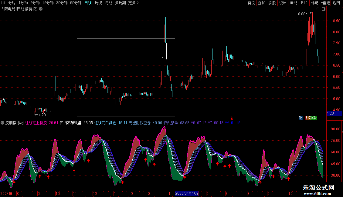 DRAWICON(CROSS(红线在上持股,A7),(红线在上持股 * 0.80),1);