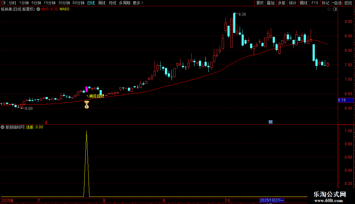 选股:VAR1 AND 捕捉线>REF(捕捉线,1) AND C>捕捉线,COLORYELLOW;