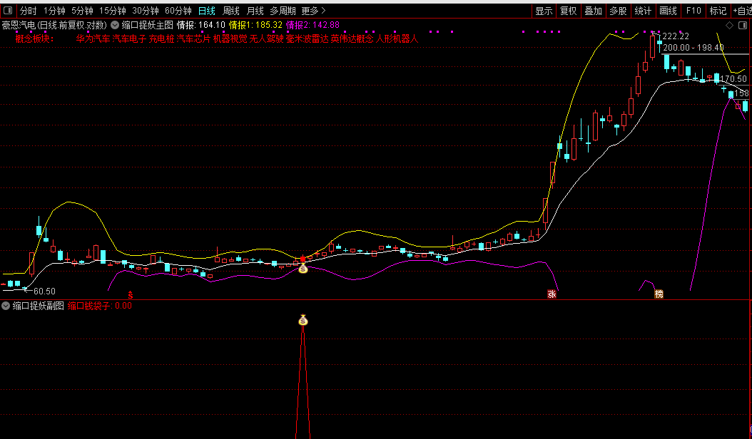 当多空布林带缩口时结合MACD判断更好。往往捉到大牛股。