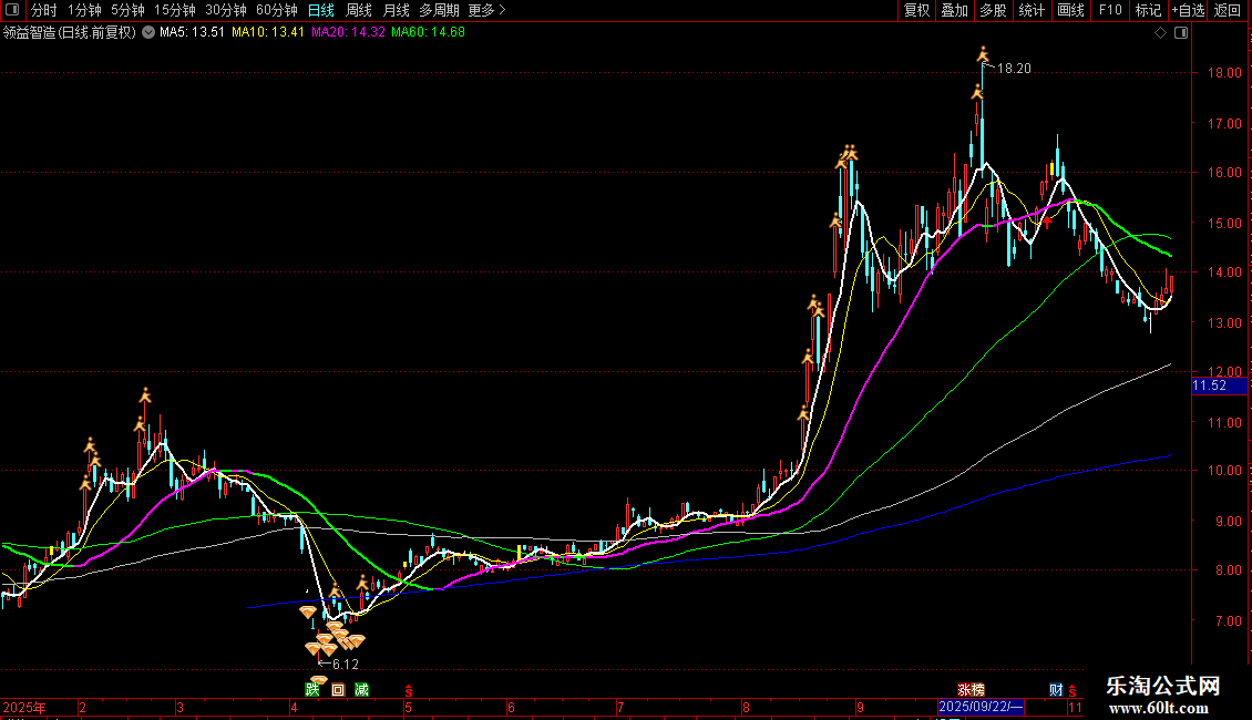 DRAWICON((MA(C,4)*4+MA(C,25))/5>=MA(C,25) AND MA(C,5)<MA(C,25),L*0.97,1);