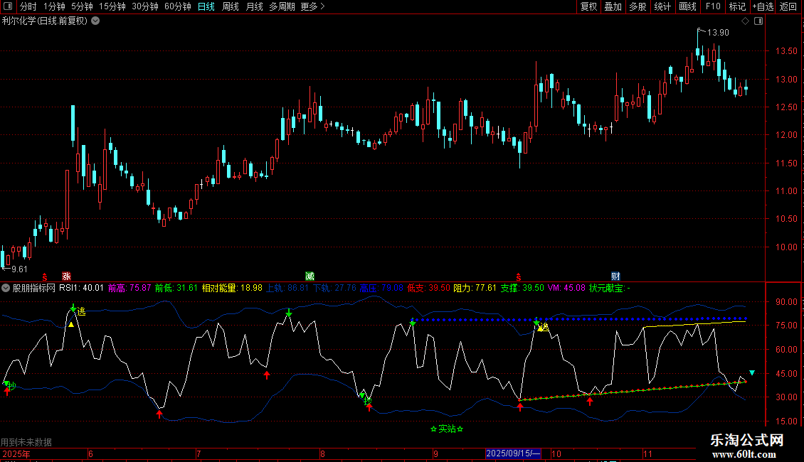 DRAWTEXT(CROSS(UPPER,RSI1),UPPER,'逃'),COLORYELLOW;