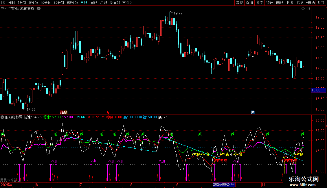 W底1:=COUNT( CROSS(快速,25),15)>=2 AND 抄底=20;