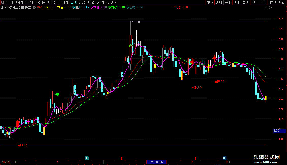 ACC:=E+(HIGH-LOW),NODRAW;ADD:=E-(HIGH-LOW),NODRAW;今阻力:REF(AAA,1),COLORWHITE,NODRAW;