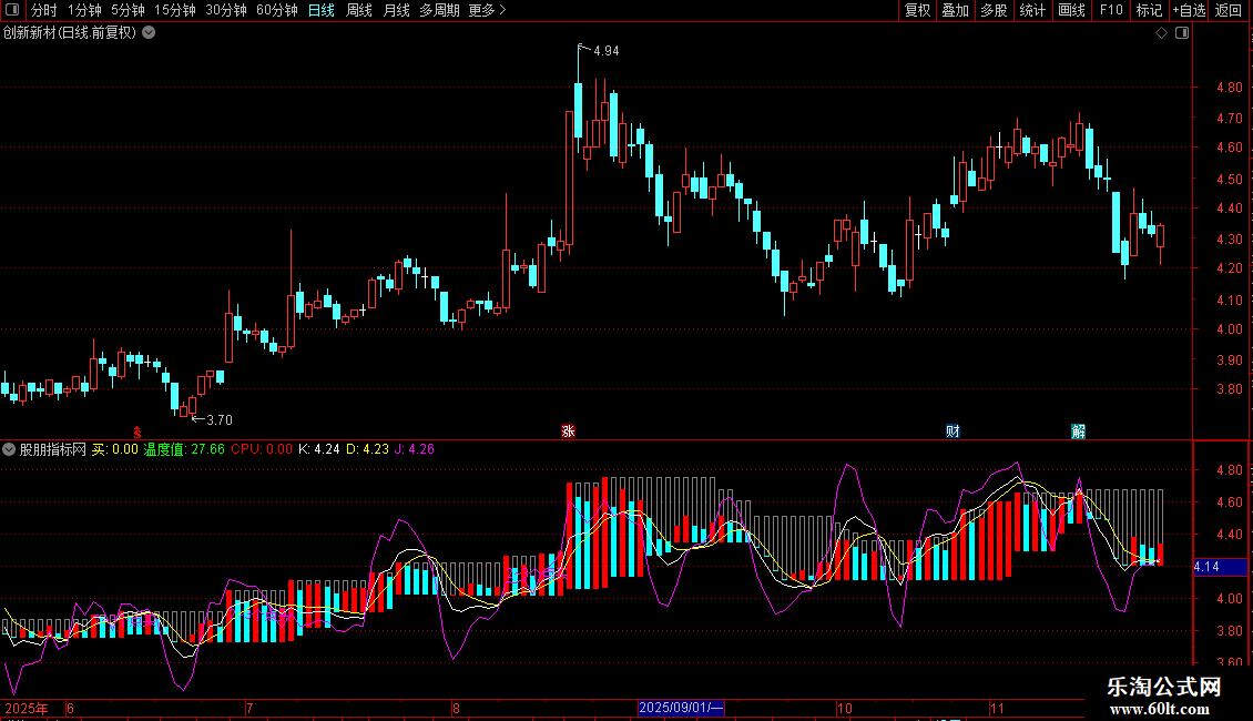 温度值:(C-LLV(C,21))/(HHV(C,21)-LLV(C,21))*100,COLORGREEN,NODRAW;