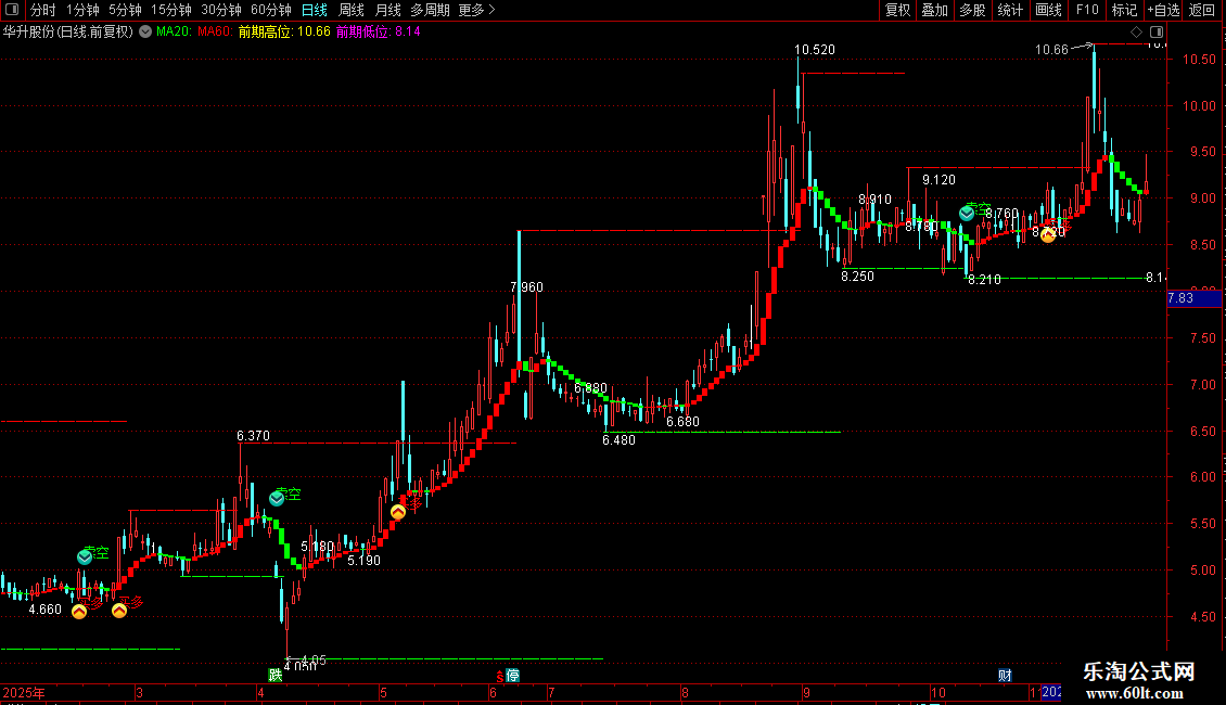 3. 关键位识别:独创算法精准标记前期高点和低点,形成支撑阻力带