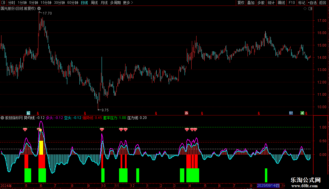 VAR14:STICKLINE(空头>=压力线,-1,-0.5,3,0),COLOR00FF00;