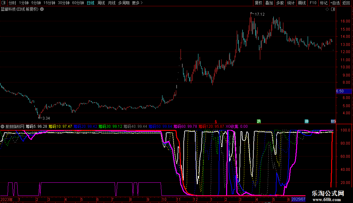 筹码周期指标通过分析不同周期的筹码分布,评估市场集中度。主要功能包括:
