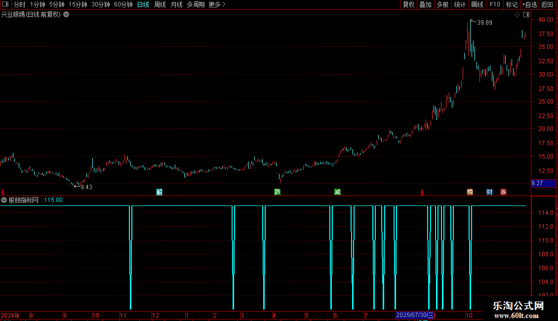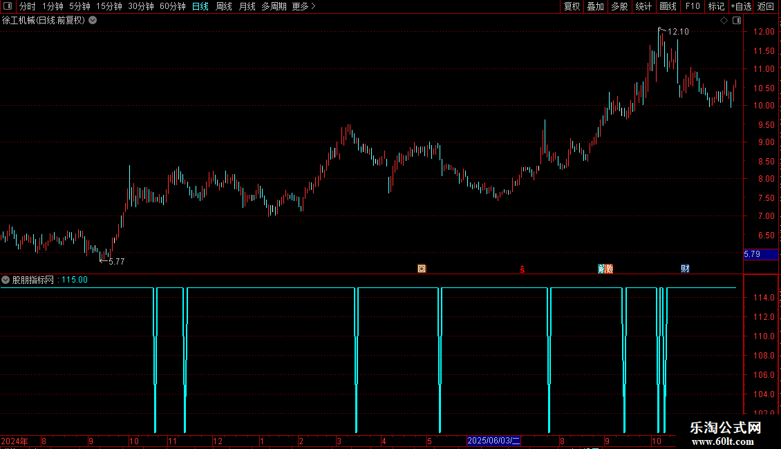 IF(CROSS(K,D) AND D>55,100,115),COLORCYAN,LINETHICK2;