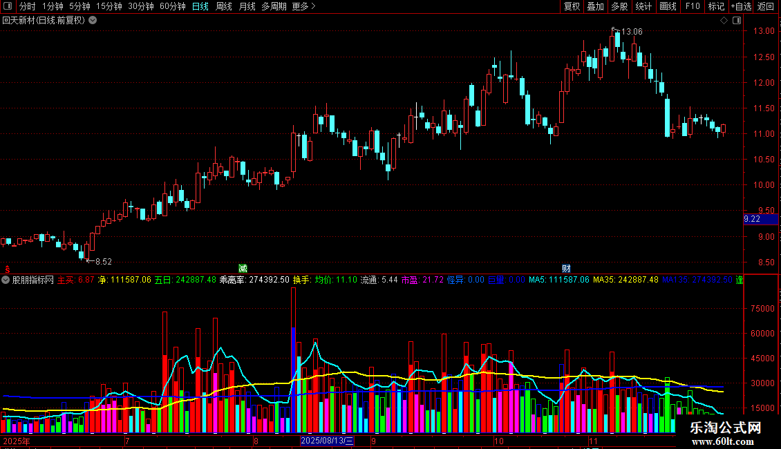 AA赋值:成交量(手)/((最高价-最低价)*2-收盘价-开盘价的绝对值)