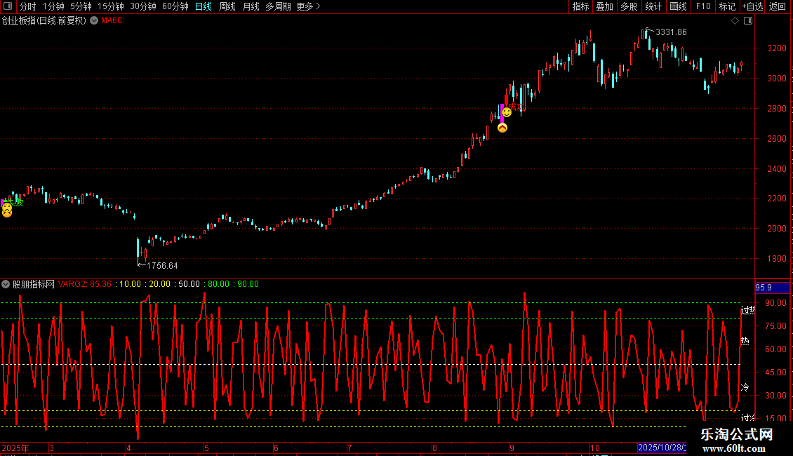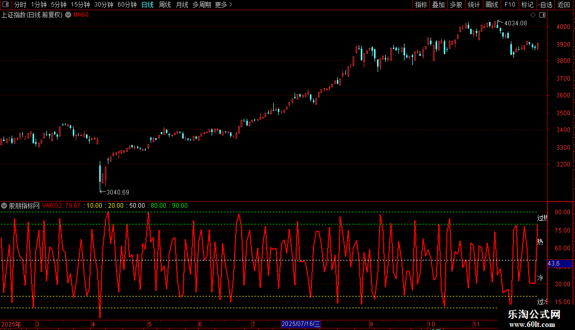 DRAWTEXT(CURRBARSCOUNT=1,15,'过冷'),COLORWHITE;