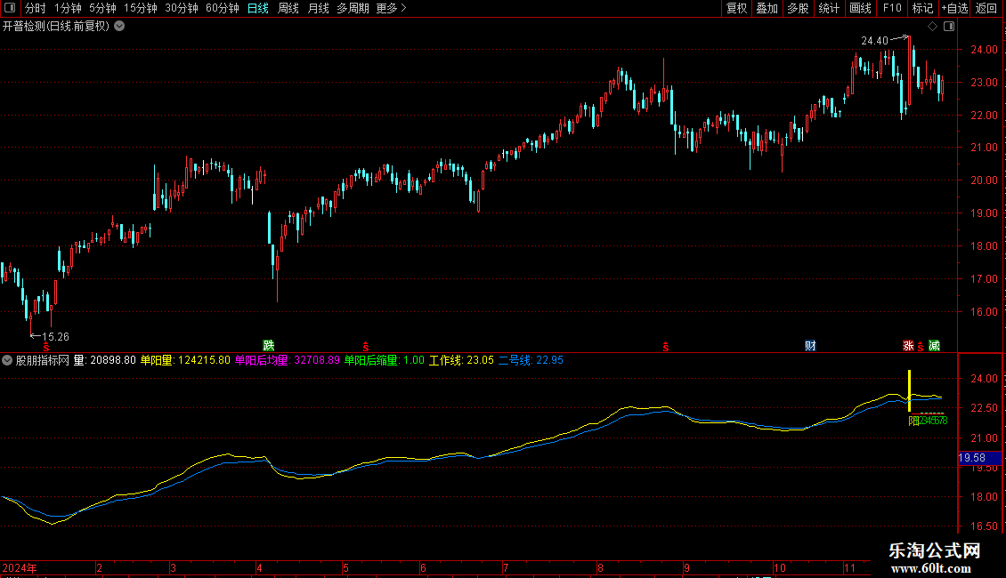 DRAWTEXT(CURRBARSCOUNT<100 AND 单阳,L*0.98,'阳'),COLOR00BBBB;