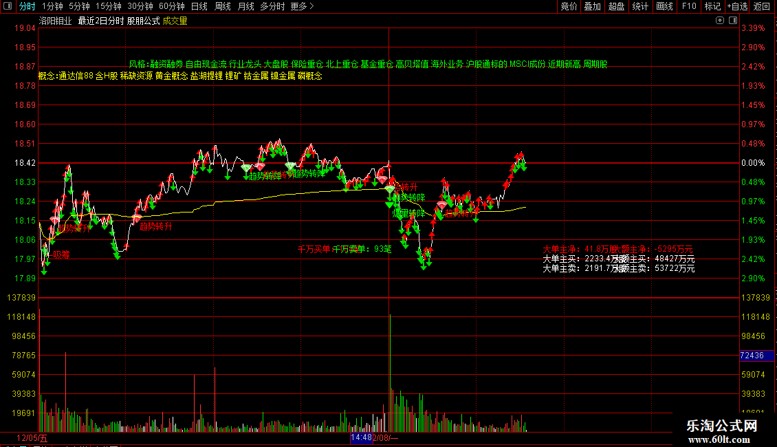 1.分时大单是分时主图,识别当前主力资金买卖量,以及显示千万买单和卖单的数量。主图中吸筹主买信号,派发是主卖信号。