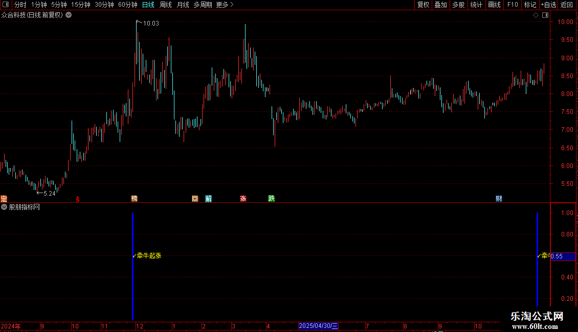 趋势判断:通过多周期均线(如5日、10日、20日、60日、125日、250日均线)的排列关系,判断长期上升趋势。