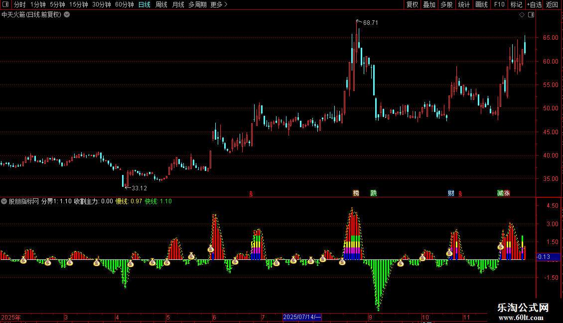 收获:=BARSLASTCOUNT(分界1>=0)=1;