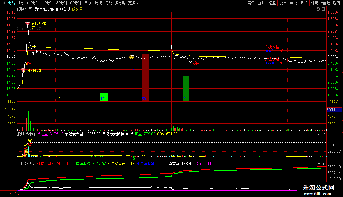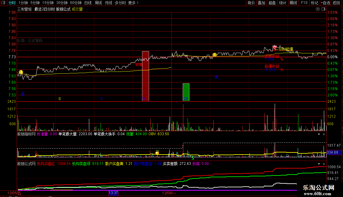 通达信【AI量化分时量化】指标,抓板,吸筹,突破,起爆,机构能量(分时主图+分时副图)