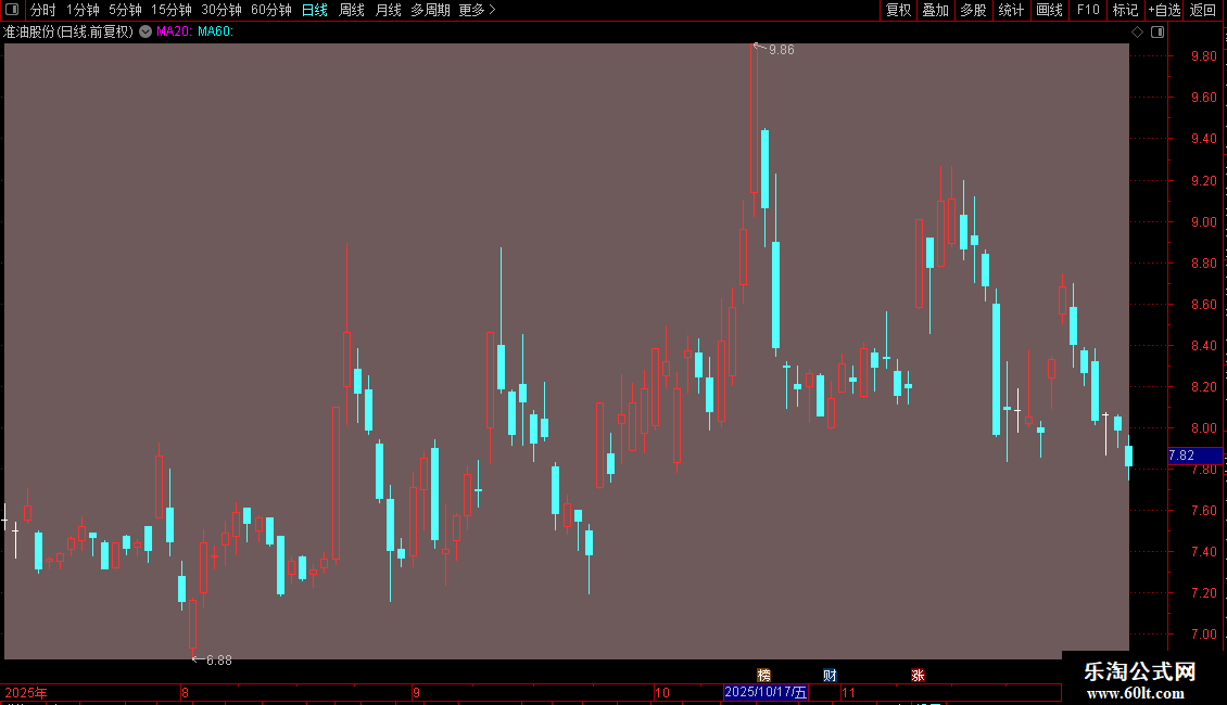 T7{射击之星}:=CONST(IF((MIN(OPEN,CLOSE)=LOW AND HIGH-LOW >