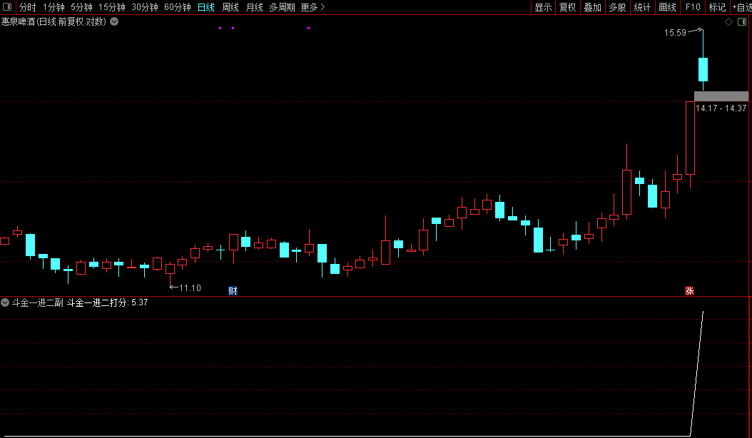 斗金一进二 公式包括1竞价指标(电脑使用)、1副和1选股指标。专为短线捕捉个股“一进二”涨停机会设计,核心围绕资金流、涨停结构、量能等关键维度构建评分体系。公式整合了资金净额、资金规模占比、涨停判定、开板识别、量能放大等多维度数据,通过量化计算输出“斗金一进二打分”,数值越高代表个股次日晋级二板的概率越大。