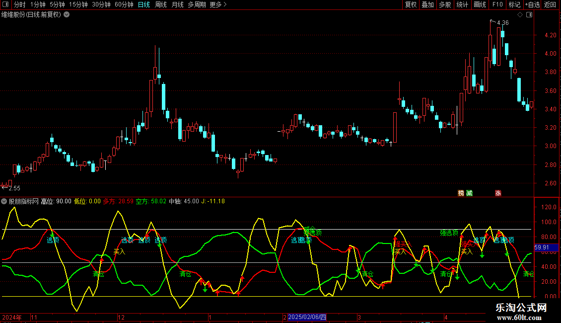 J线低位拐头向上:=J<50 AND J>REF(J,1) AND REF(J,1)<REF(J,2); {J线在低位开始向上转折}