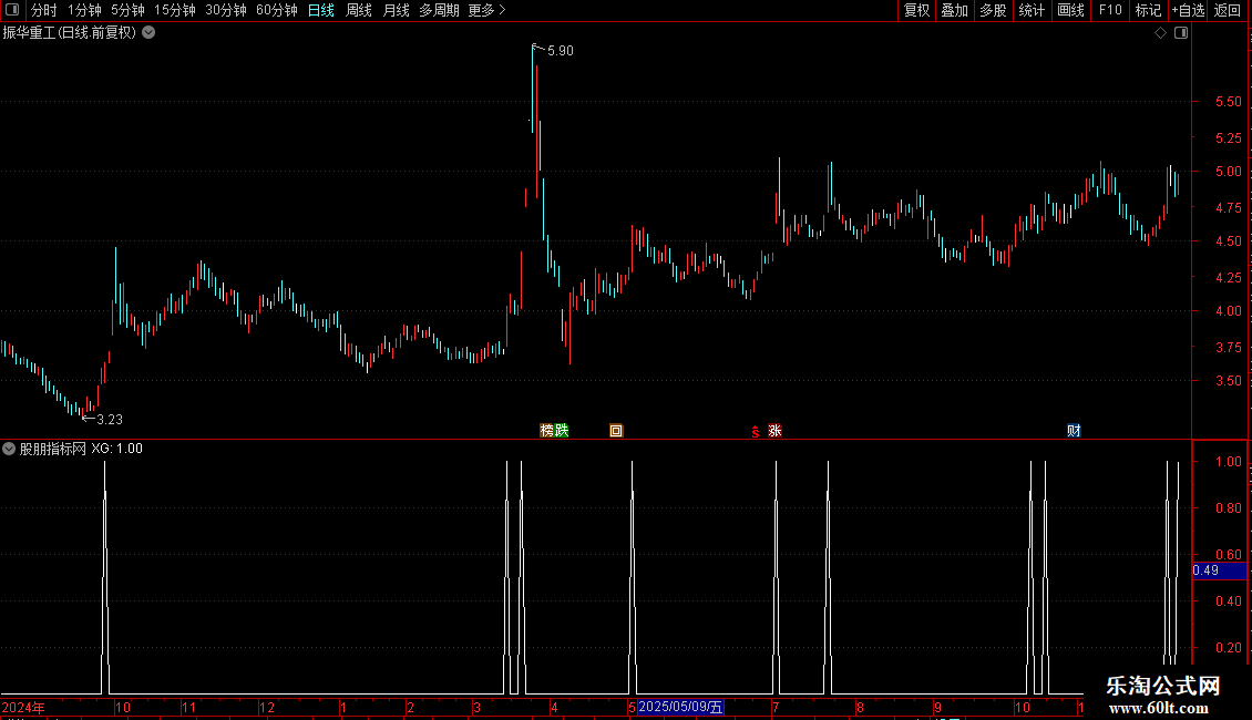 强势:=STICKLINE(趋势启动>5 AND DIFF>DEA AND C>=EMA(C,5) AND A1-B1>0,0,-做空,2,0 );