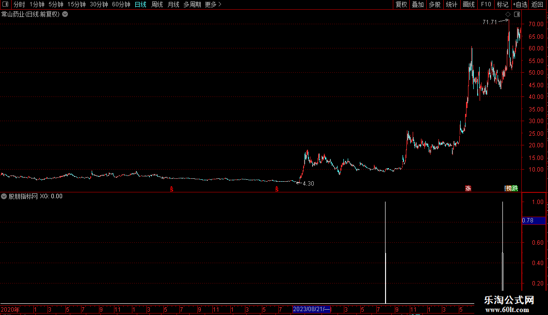 ZB:=C< H AND H>=ZTPRICE(REF(C,1),X1);
