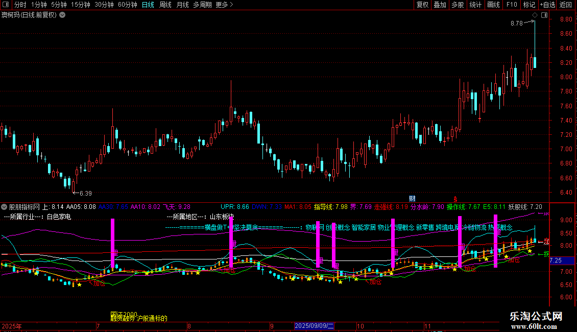 DRAWTEXT(ISLASTBAR,飞天,' ←成妖线'),COLORMAGENTA;