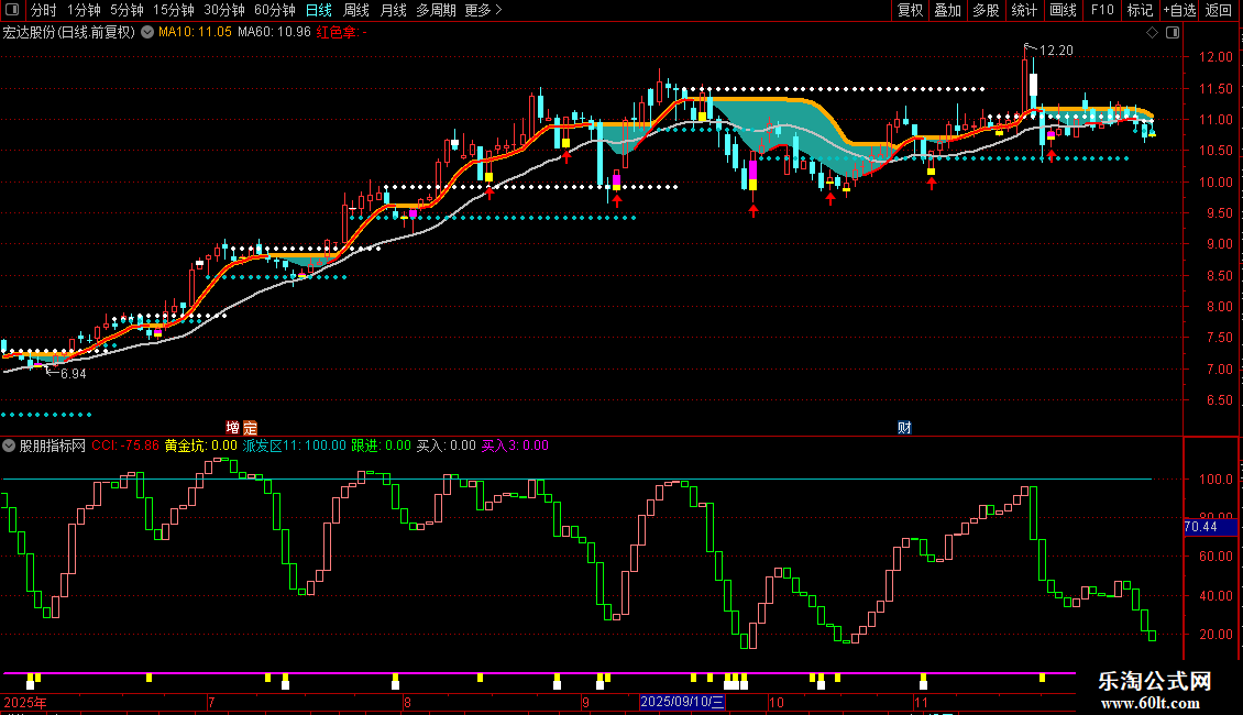 DEA短:EMA(DIF短,9),COLORLIRED,LINETHICK1;{过去是7}