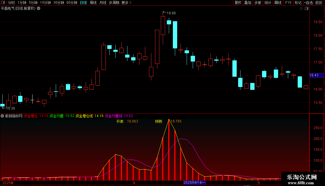 资金均量线:MA(DC,5),COLORMAGENTA;