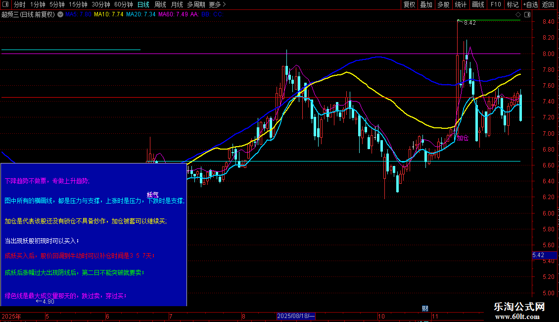 DRAWTEXT_FIX(1,0.008,0.55,0,'下降趋势不做票,专做上升趋势;'),COLORMAGENTA;