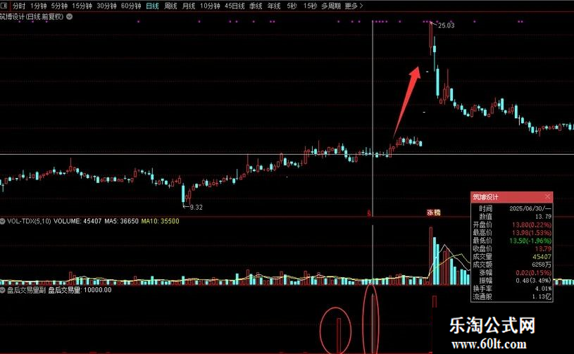 这个副图指标需要下载专业财务数据的,盘后交易量是创业板和科创板有的,成交是三点以后的,我们单独把三点以后的成交量列出来,如果突然某一段时间出现大量的盘后交易,或者某一段时间内连续多天盘后成交很多,就要注意了,这样的票后劲很大,再结合热点方向,很容易搞到20厘米的大肉。