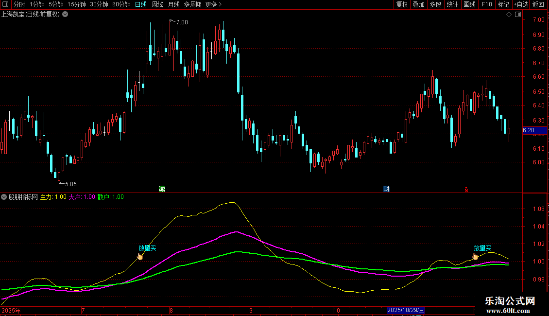 自用指标,不一样的三线定强弱副图,有买点提示,感觉挺精准的!黄线、紫线、绿线从上到下多头排列时关注,出现“放量买”时入手,往往有比较好的收益,甚至可能有惊喜。本指标源码,无未来函数!
