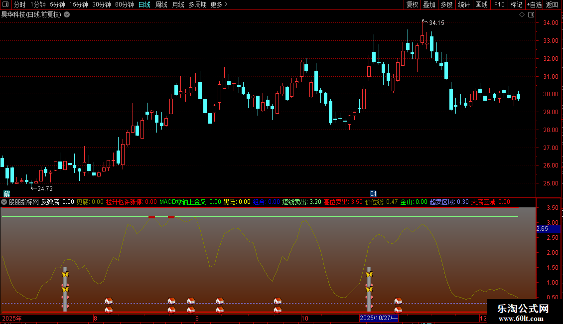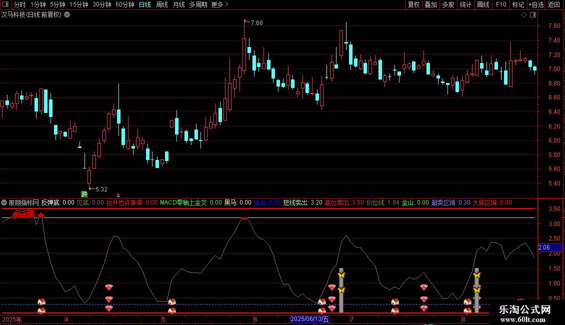 见底:IF(ZT6 AND CROSS(ZT4,ZT5) AND ZT4<50,1.5,0),COLORBROWN,NODRAW;