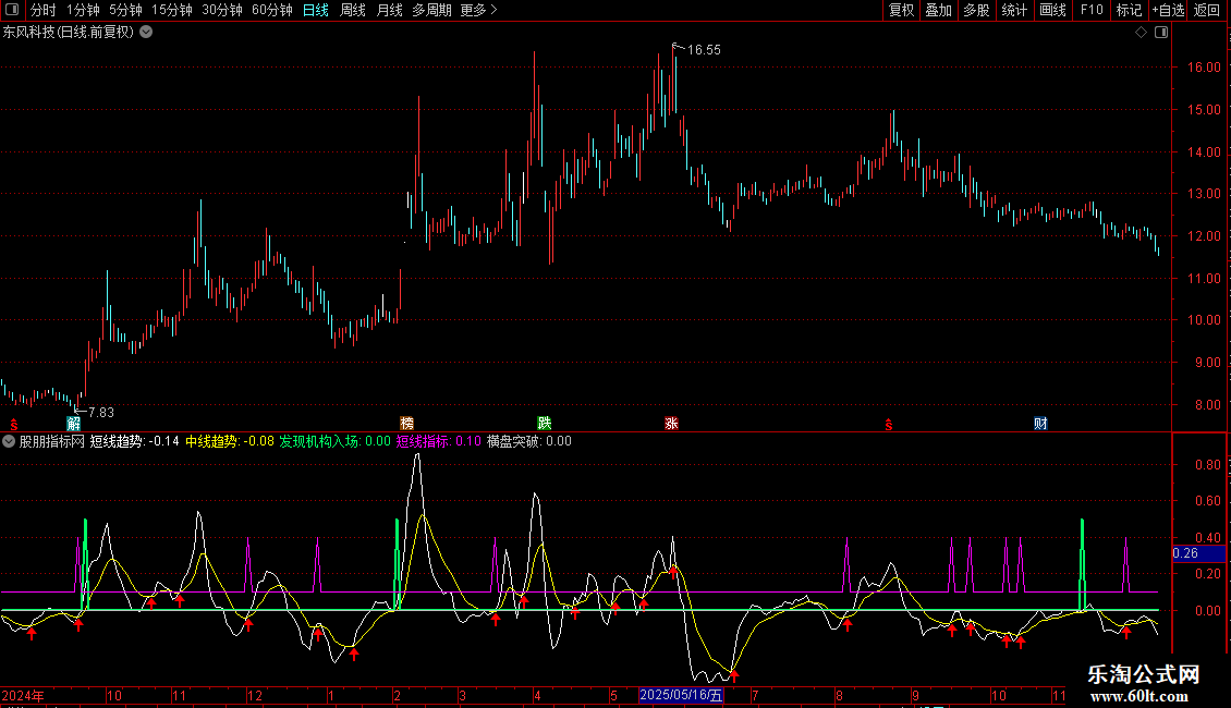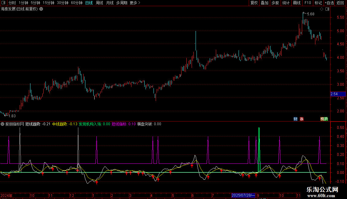 • 买入信号:当“发现机构入场”信号出现(绿色粗线),且短线趋势上穿中线趋势并伴随放量,是较好的介入点。