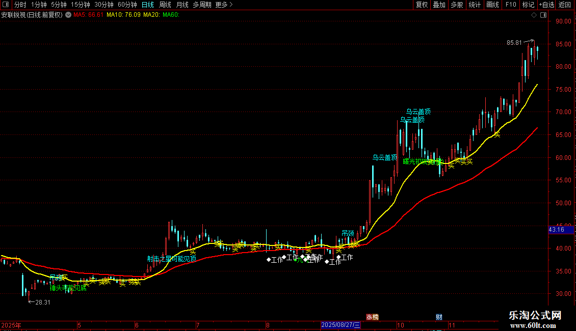 DRAWTEXT(乌云盖顶,H*1.03,'乌云盖顶'),COLORCYAN;