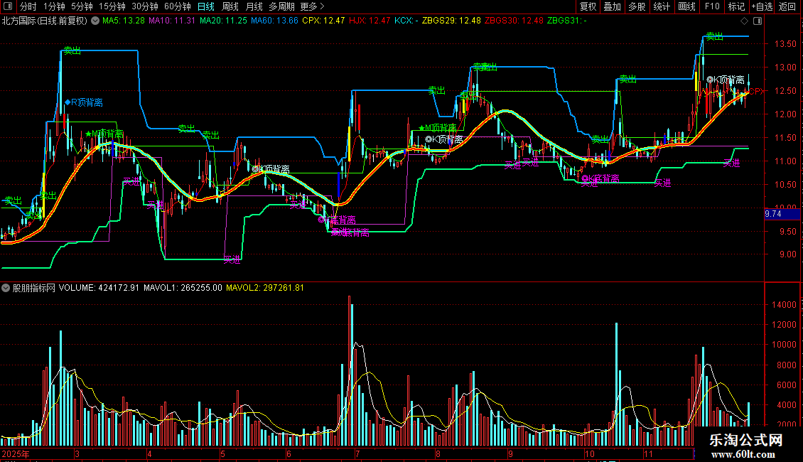 - 多重背离检测:包括M(MACD)、K(随机指标)和R(相对强弱)的底背离与顶背离,以图标形式提示潜在反转。